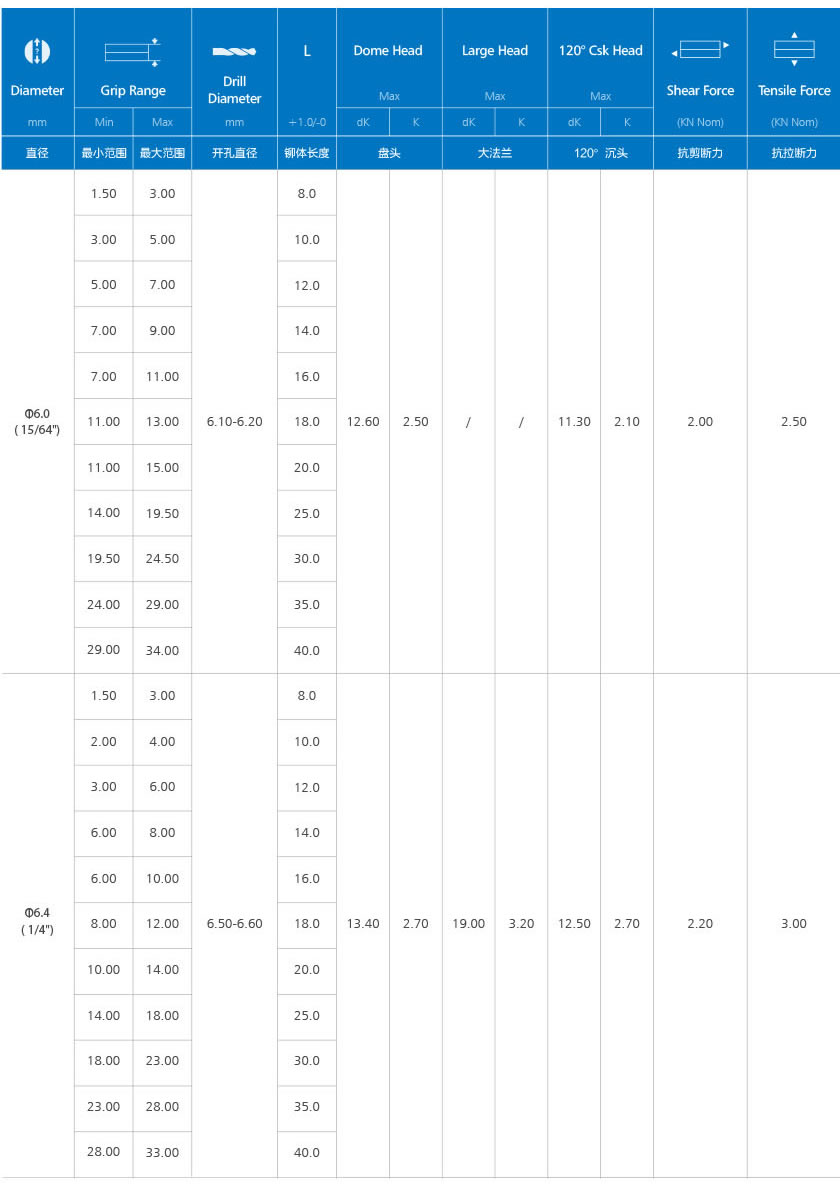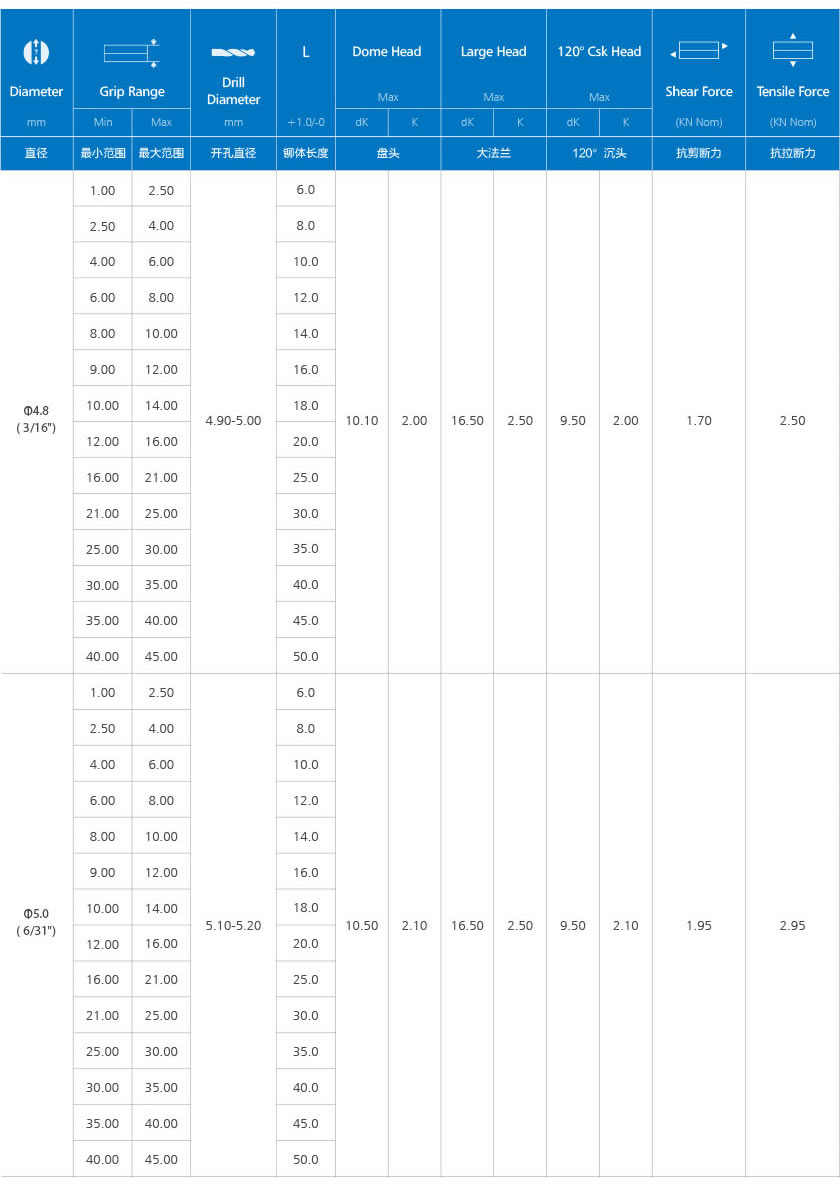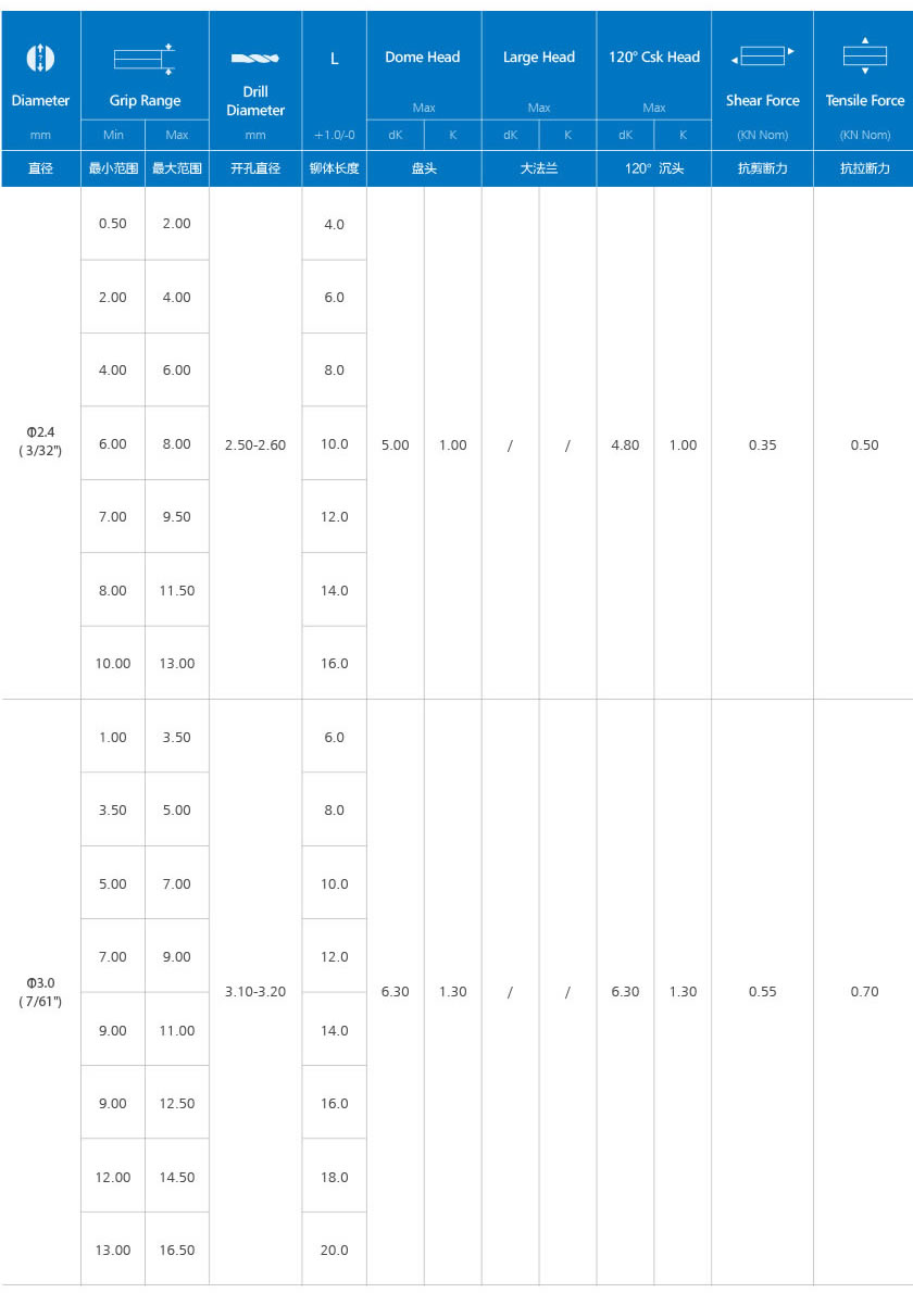 当前位置: 首页产品中心开口型拉铆钉 开口铆钉(铝合金&碳钢)