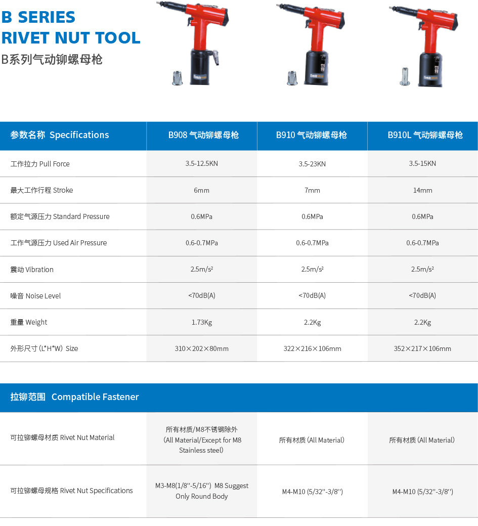 当前位置: 首页产品中心拉铆工具 B系列气动铆螺母枪