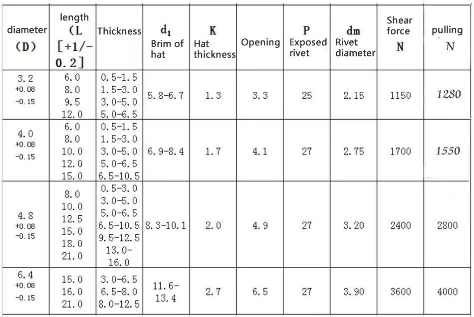 Closed round head rivets (closed rivets) are composed of two parts: the body and the core. The use of professional tools to clamp two workpieces in the product at the location where the rivet core causes plastic deformation of the rivet body, achieving riveting and fastening. Designed to wrap around the shaft head after riveting, it is very suitable for various applications with waterproof requirements. It has the characteristics of high shear force, anti vibration, and good sealing performance of high-pressure connectors. Easy to operate, excellent riveting, beautiful appearance, high physical performance, and the characteristic of one-way riveting operation. Materials include stainless steel, aluminum, iron, and other materials. Closed rivets are widely used in fastening fields such as automobiles, ships, decorative construction engineering, electronic industry, food machinery, and mechanical equipment.