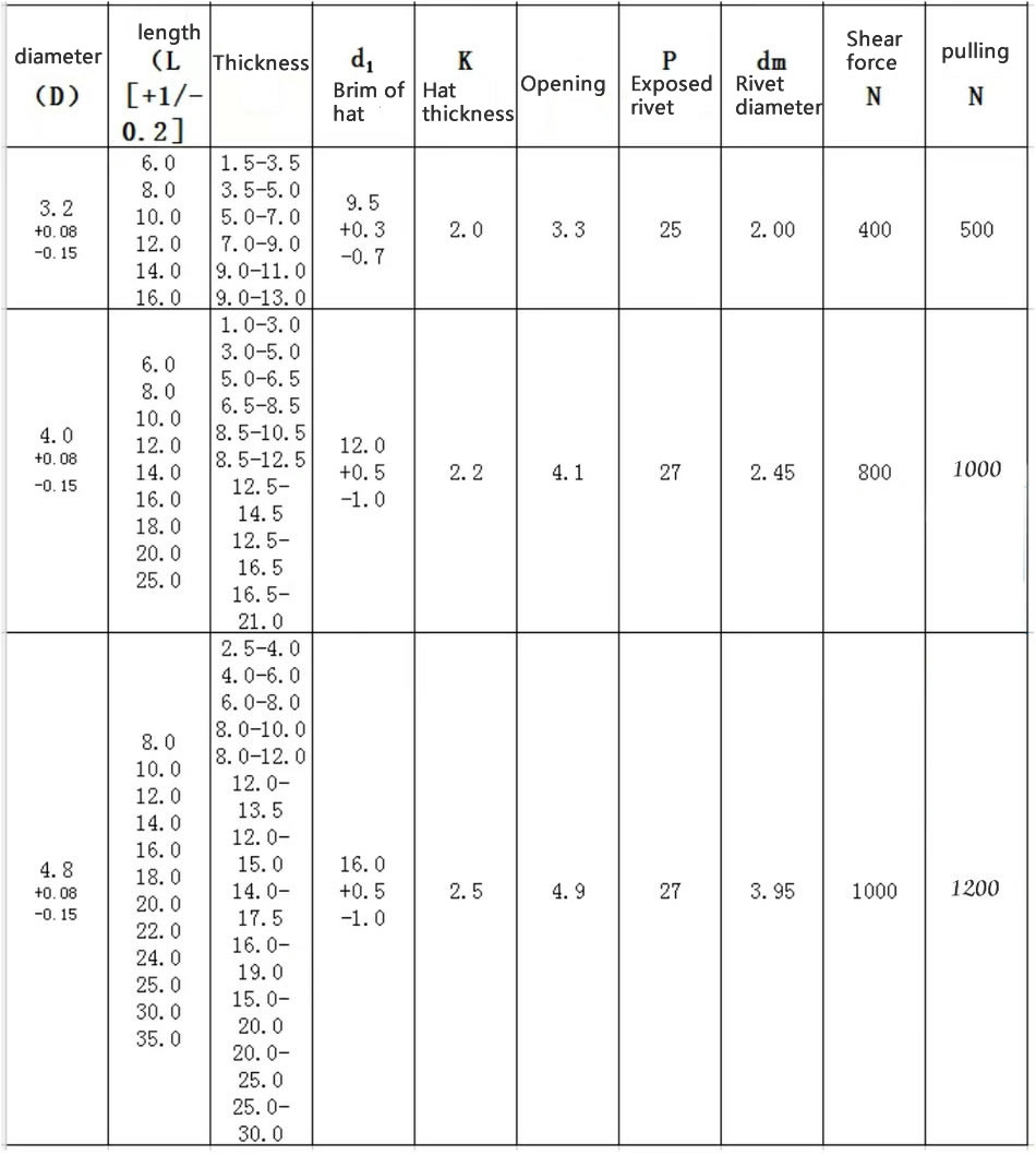 Compared with ordinary rivets, the cap diameter of the large cap rivet is significantly larger. The large cap rivet has a larger contact area and stronger support surface when riveting with connectors, which can increase torque strength and withstand higher radial tension. The materials used include stainless steel, iron, aluminum, and other materials. The models include open type rivets, closed type rivets, single and double drum type rivets, lantern type rivets, flower shaped rivets, colored rivets, and so on. Suitable for cars, fans, luggage, carriages, etc. Easy to operate, aesthetically pleasing in appearance, and characterized by unidirectional riveting.