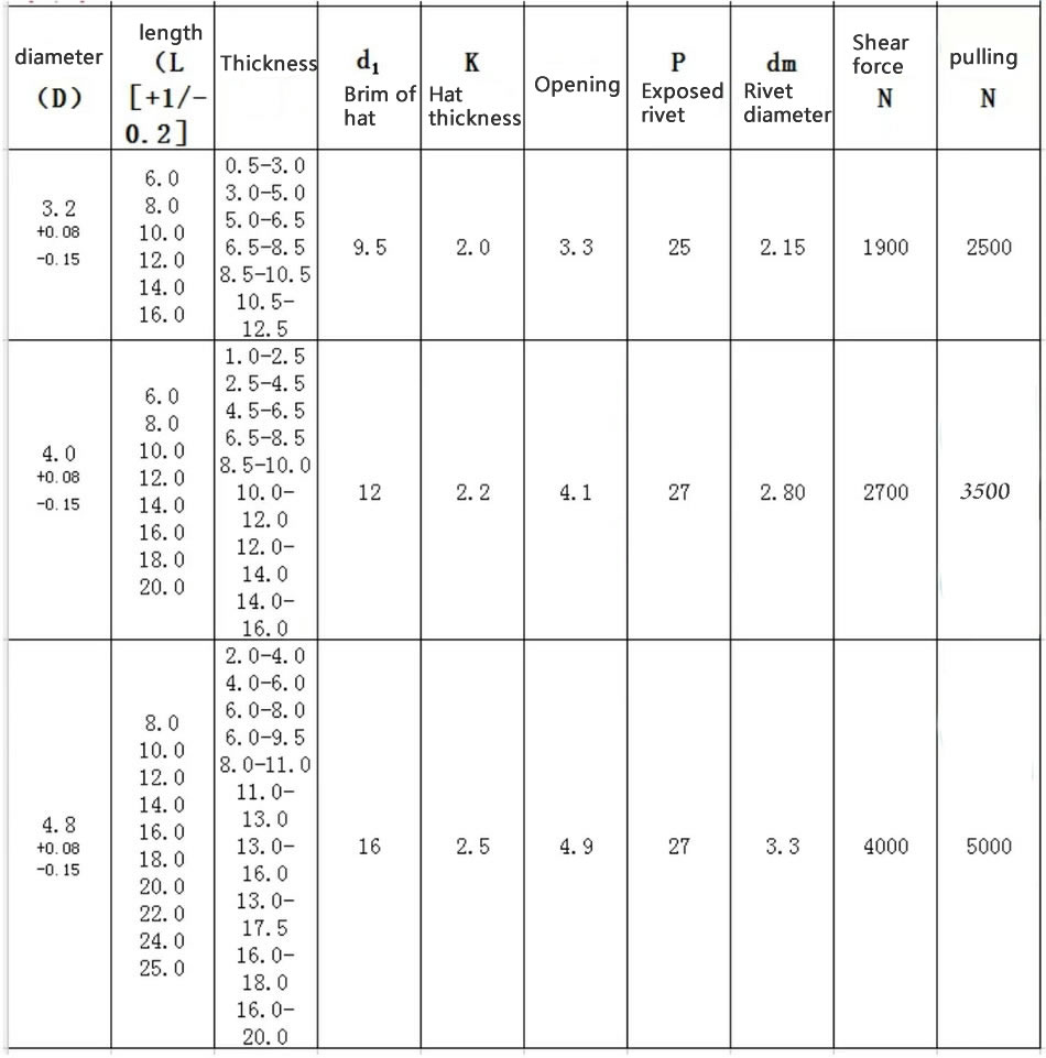 Compared with ordinary rivets, the cap diameter of the large cap rivet is significantly larger. The large cap rivet has a larger contact area and stronger support surface when riveting with connectors, which can increase torque strength and withstand higher radial tension. The materials used include stainless steel, iron, aluminum, and other materials. The models include open type rivets, closed type rivets, single and double drum type rivets, lantern type rivets, flower shaped rivets, colored rivets, and so on. Suitable for cars, fans, luggage, carriages, etc. Easy to operate, aesthetically pleasing in appearance, and characterized by unidirectional riveting.