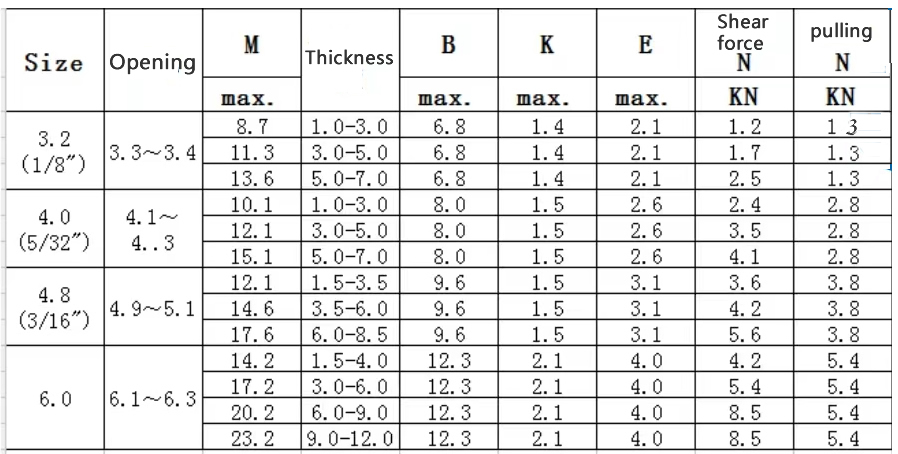 After single drum rivet riveting, the rivet did not end up with one drum, and after double drum rivet riveting, the rivet did not end up with two drums. Materials include stainless steel, aluminum, iron, and other materials. The function is to clamp two riveted structural components and reduce the pressure acting on the surface of the structural components. It is characterized by simple one-way operation, good waterproofing, and can reduce labor intensity. Suitable for riveting various thin structural components in industries such as sedans, ships, machinery, furniture, etc.